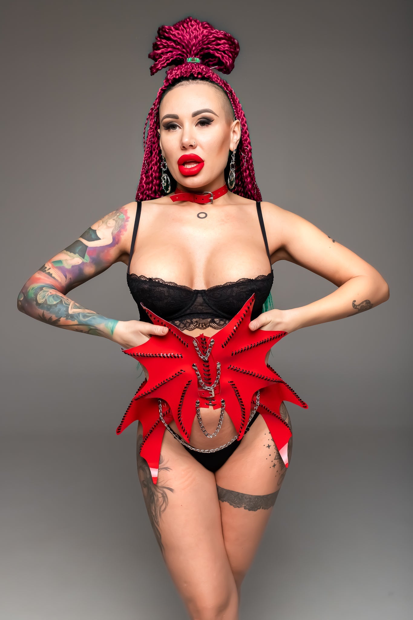 Women's Kinky Clothing, Halloween Cosplay Costume, Dragon Corset Costume, Red Leather Outfit for women